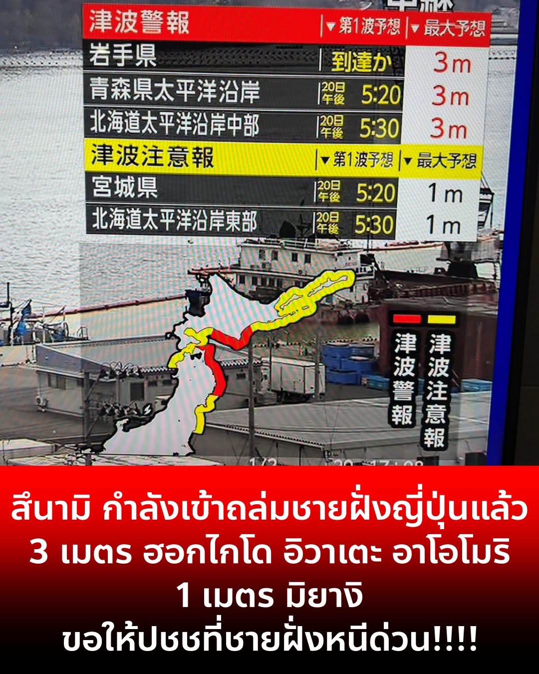 BREAKING: เกิดเหตุแผ่นดินไหวญี่ปุ่น 7.4 รัฐบาลแจ้งเตือนประชาชนระวังสึนามิที่อาจสูงถึง 3 เมตร