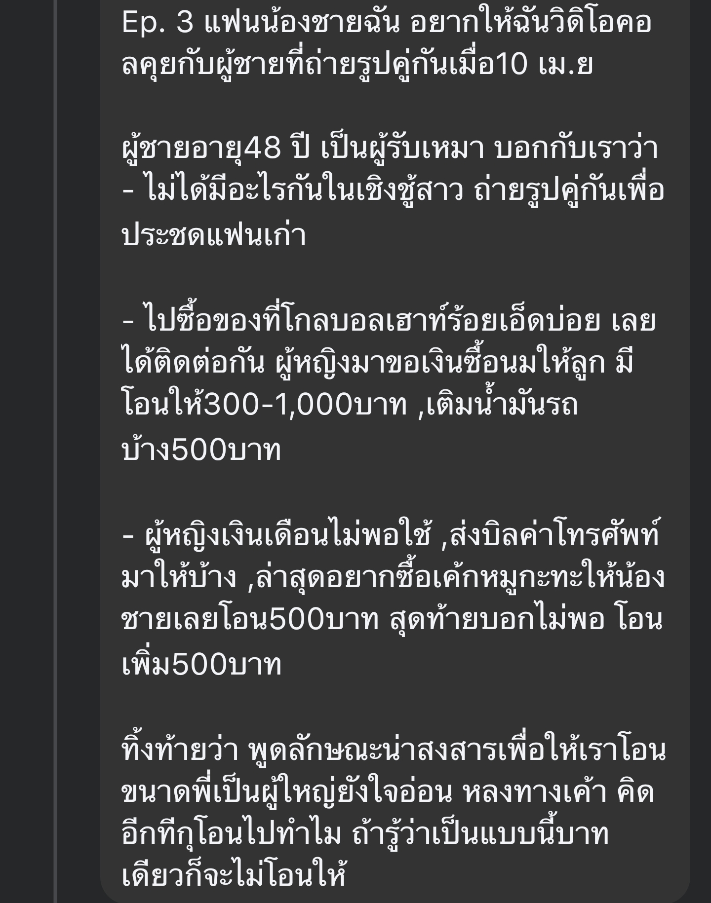 [RE: เหตุการณ์นี้เรียกว่า ความรักหรือมิจฉาชีพคะ ?]