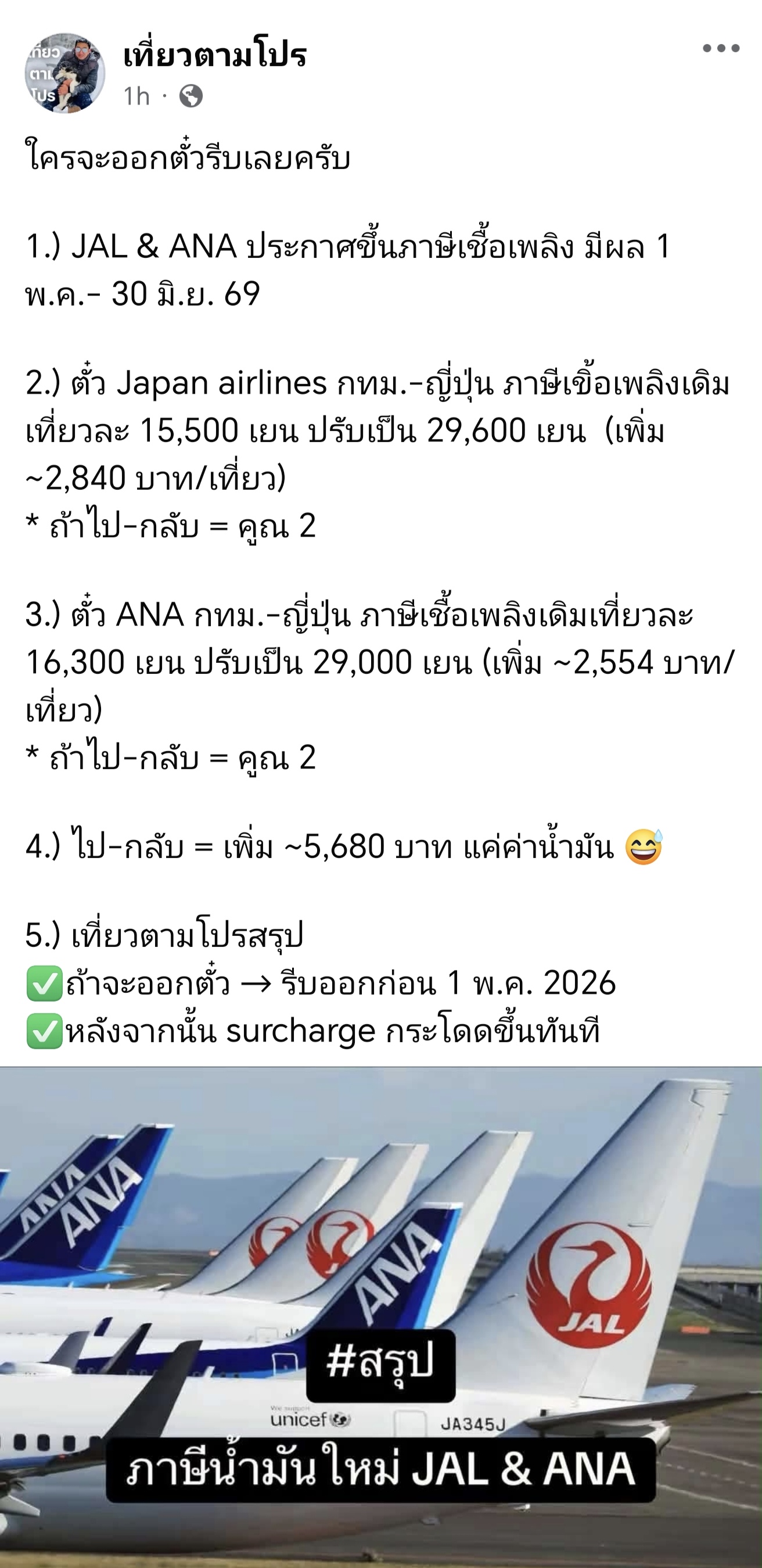 [RE: ใครจะเที่ยวญี่ปุ่นรีบจอง - JAL/ANA เตรียมขึ้นค่าตั๋วจุกๆ]