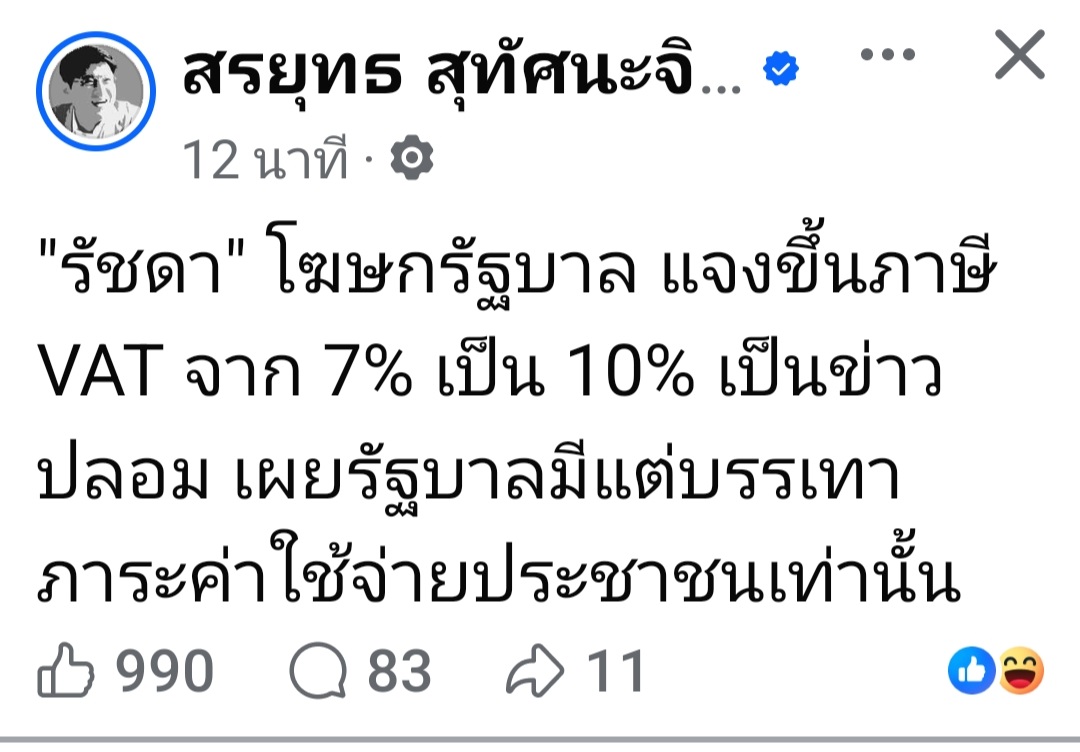 Re: รัฐบาลแจงขึ้นVATเป็น 10% ข่าวปลอม