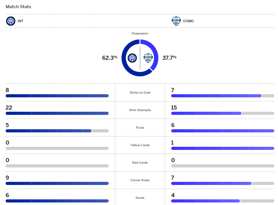 จบเกม อินเตอร์ ทำสำเร็จแซงกลับมาชนะ โคโม่ 3-2 ผ่านเข้าสู่โคปปา อิตาเลีย รอบชิงชนะเลิศ เกมนี้ยังซ้ำรอยที่เจอกันล่าสุดในลีก อินเตอร์ ตามสองลูกแซงกลับมาชนะได้เหมือนกัน