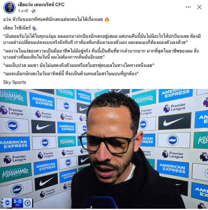 วันนี้สัมภาษณ์โจมตีนักเตะตรงๆ แต่แค่ไม่เจาะจงว่าใคร วันอาทิตย์นี้ใครหลุดตัวจริงคนนั้นแหละผู้ต้องสงส้ย ซึ่งผมว่ามีมากกว่า 1