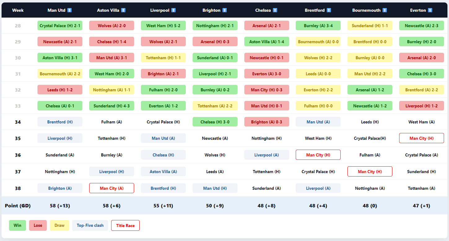 ปล. ส่วนอีก 2 ทีมคะแนนยังมีลุ้น คือ Sunderland (46 คะแนน) กับ Fulham (45 คะแนน) ยังไม่ได้เพิ่มเข้ามาครับ