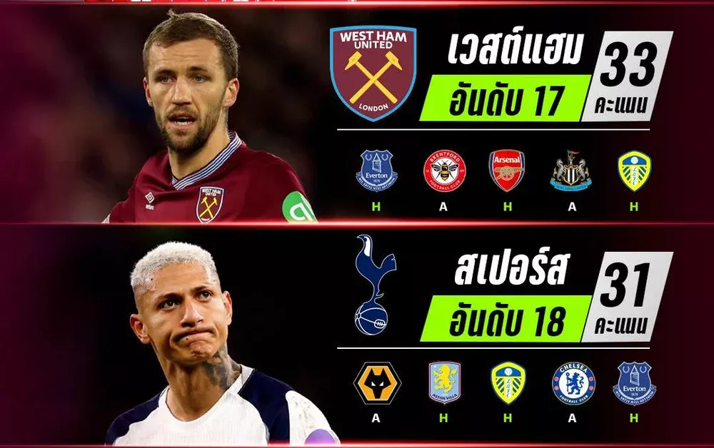 เวสต์แฮม VS สเปอร์ส คิดว่าใครตกชั้น