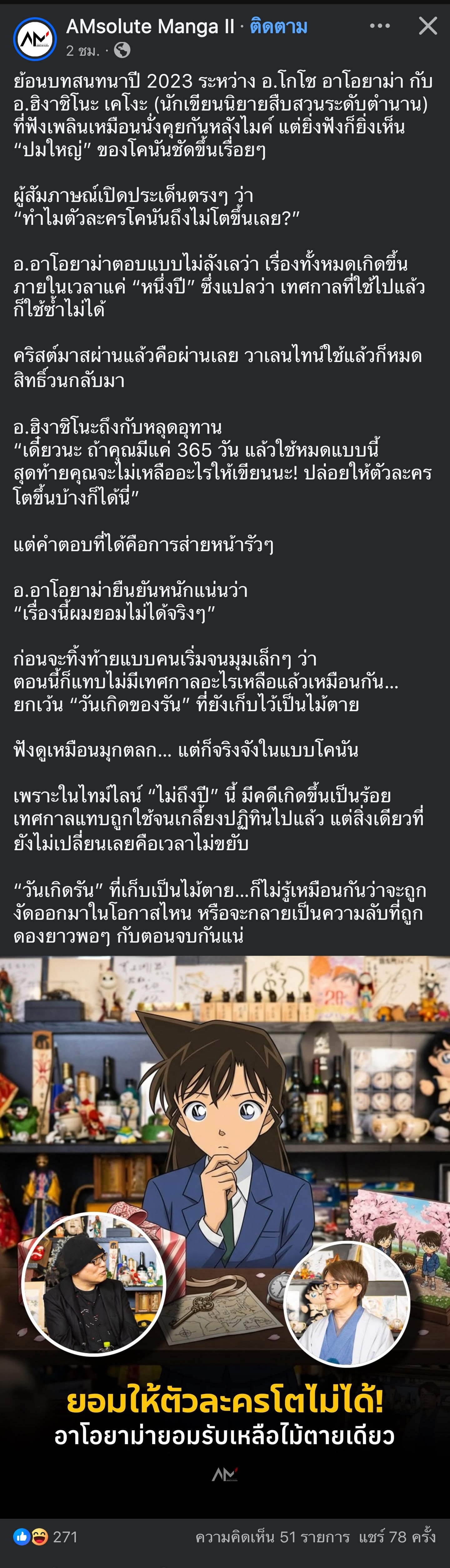 [RE]"ระยะเวลาทั้งหมดของโคนันตอนนี้ อยู่แค่ภายใน 1 ปี" - อ.อาโอยาม่า