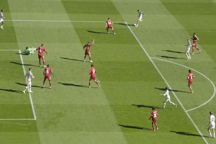 จังหวะปัญหานาที 72 "หงส์แดง" นำอยู่ 2-0 วู้ดแมน เซฟลูกยิงของ อิสไมล่า ซาร์ แล้วเกิดอาการเจ็บเข่าลงไปนอนบนพื้น