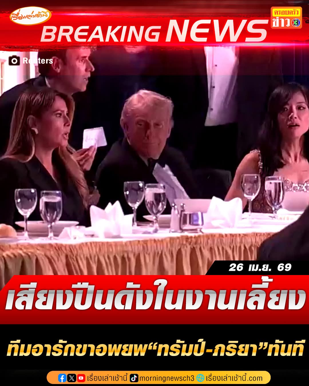 เสียงปืนดังงานเลี้ยงทรัมป์ต้องรีบหนี