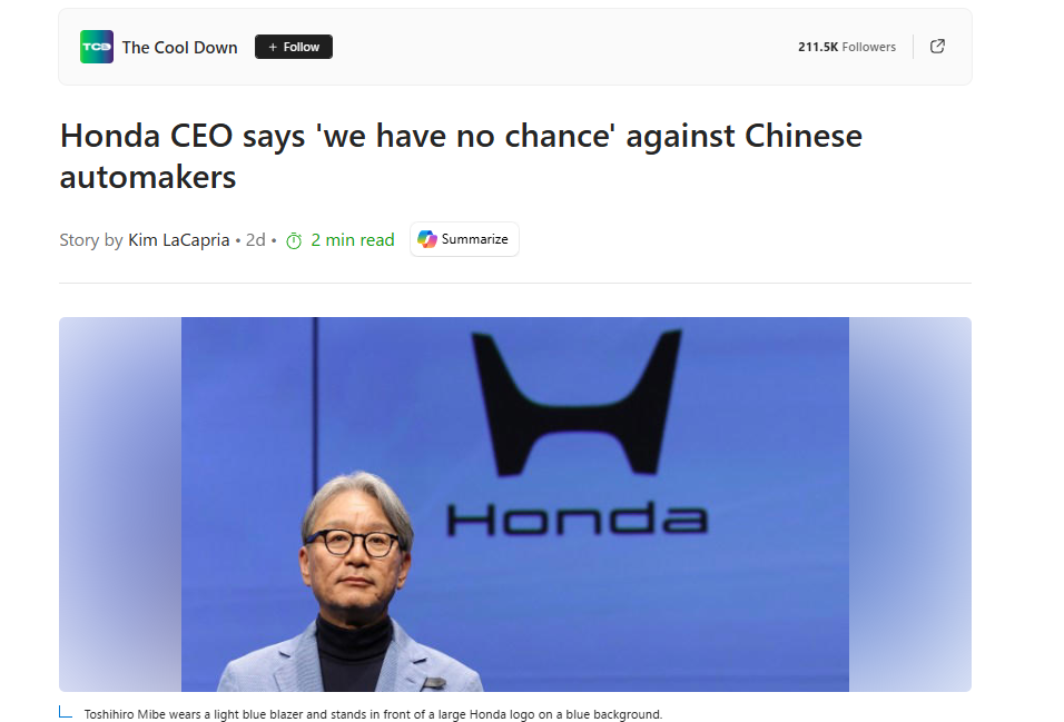 ซีอีโอ Honda ยอมรับ “ไม่มีทางสู้” ค่ายรถจีนได้
