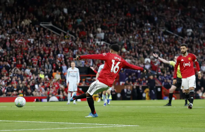 ยูไนเต็ด พลาดโอกาสขึ้นนำได้ยังไง จังหวะ เมนู โชว์ความยอดเยี่ยม พาบอลตะลุยเข้าในเขตโทษ แหวกผ่านผู้เล่นเบรนท์ฟอร์ดคนแล้วคนเล่าก่อนไหลออกซ้ายถวายพานให้ อาหมัด ตั้งป้อมยิงโล่งๆ ไปติดผู้เล่นทีมเยือนเปลี่ยนทางออกหลัง