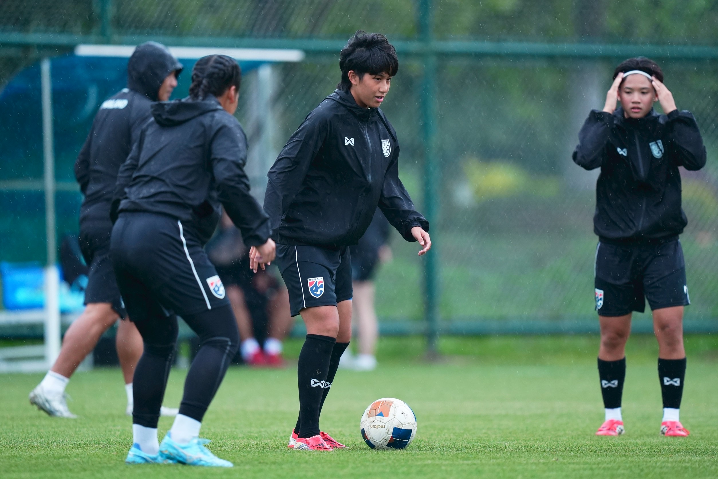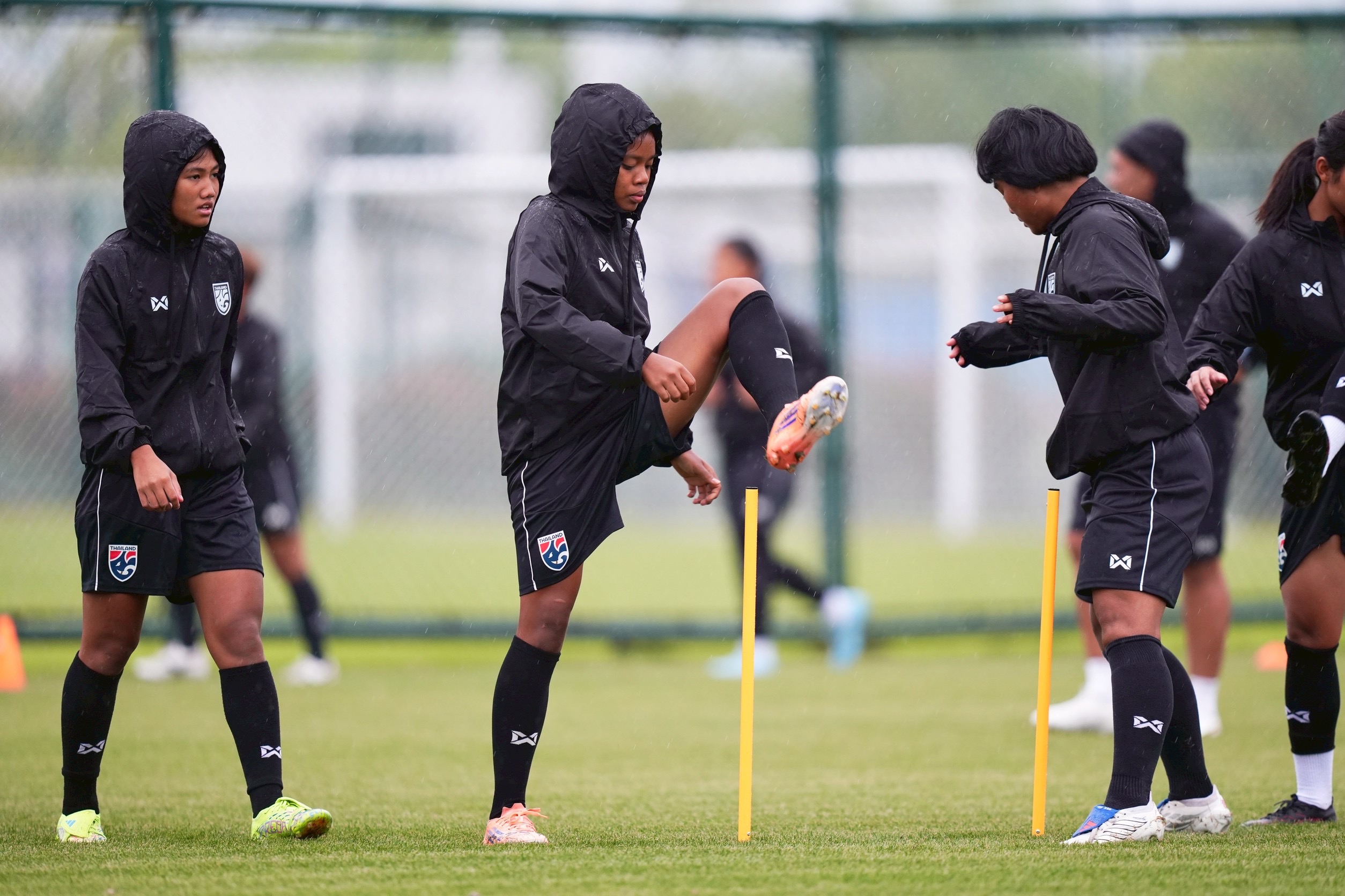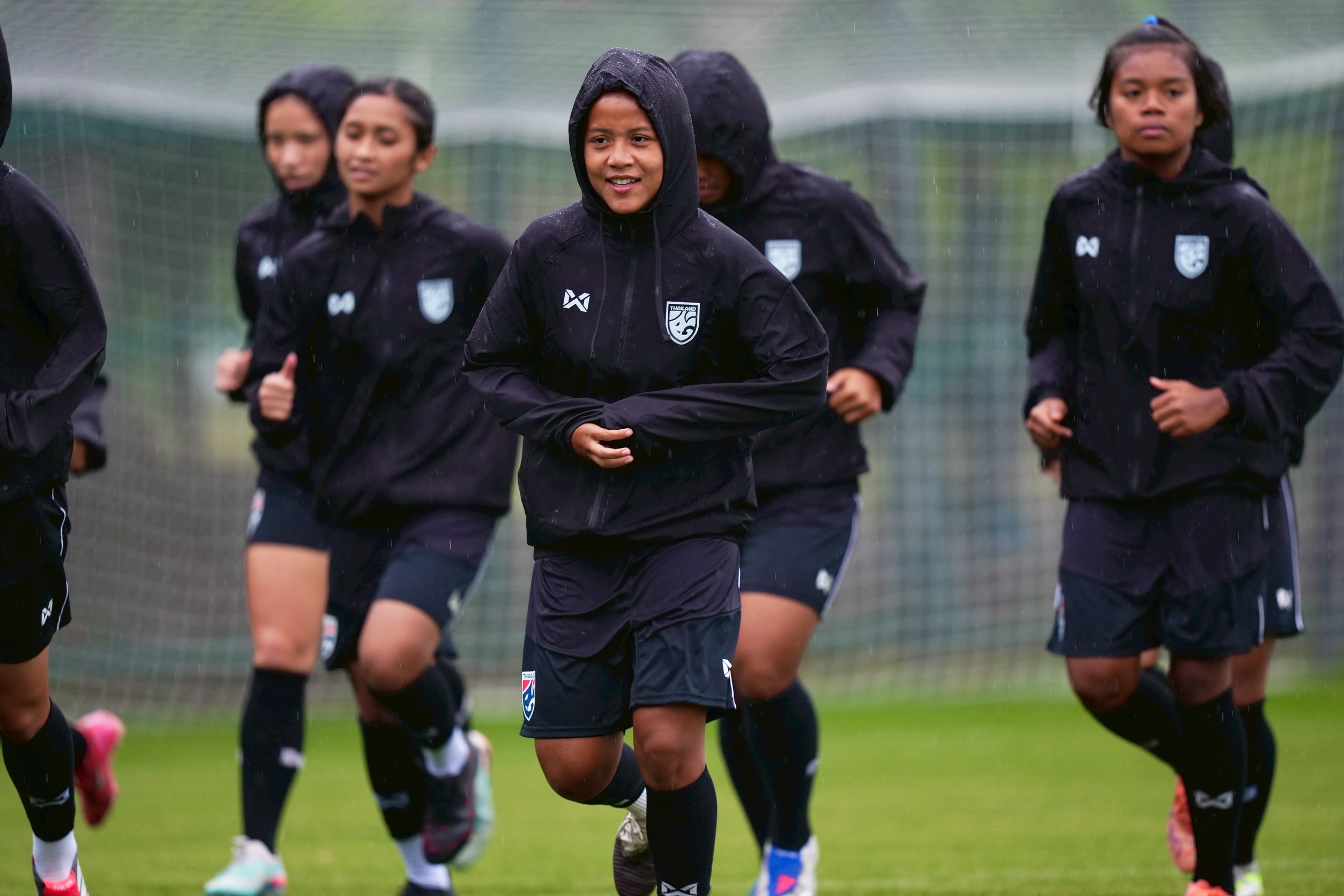 การฝึกซ้อมครั้งนี้ "โค้ชมิ่ม" ธิดารัตน์ วิวาสุขุ หัวหน้าผู้ฝึกสอน นำทัพลงติวเข้ม โดยเน้นไปที่การปรับตัวกับสภาพอากาศที่มีอุณหภูมิกว่า 14 องศาเซลเซียสและมีฝนตกลงมา รวมถึงการสร้างความสัมพันธ์ภายในทีมทั้งเกมรุกและเกมรับ ซึ่งใช้เวลา 1 ชั่วโมง 30 นาที