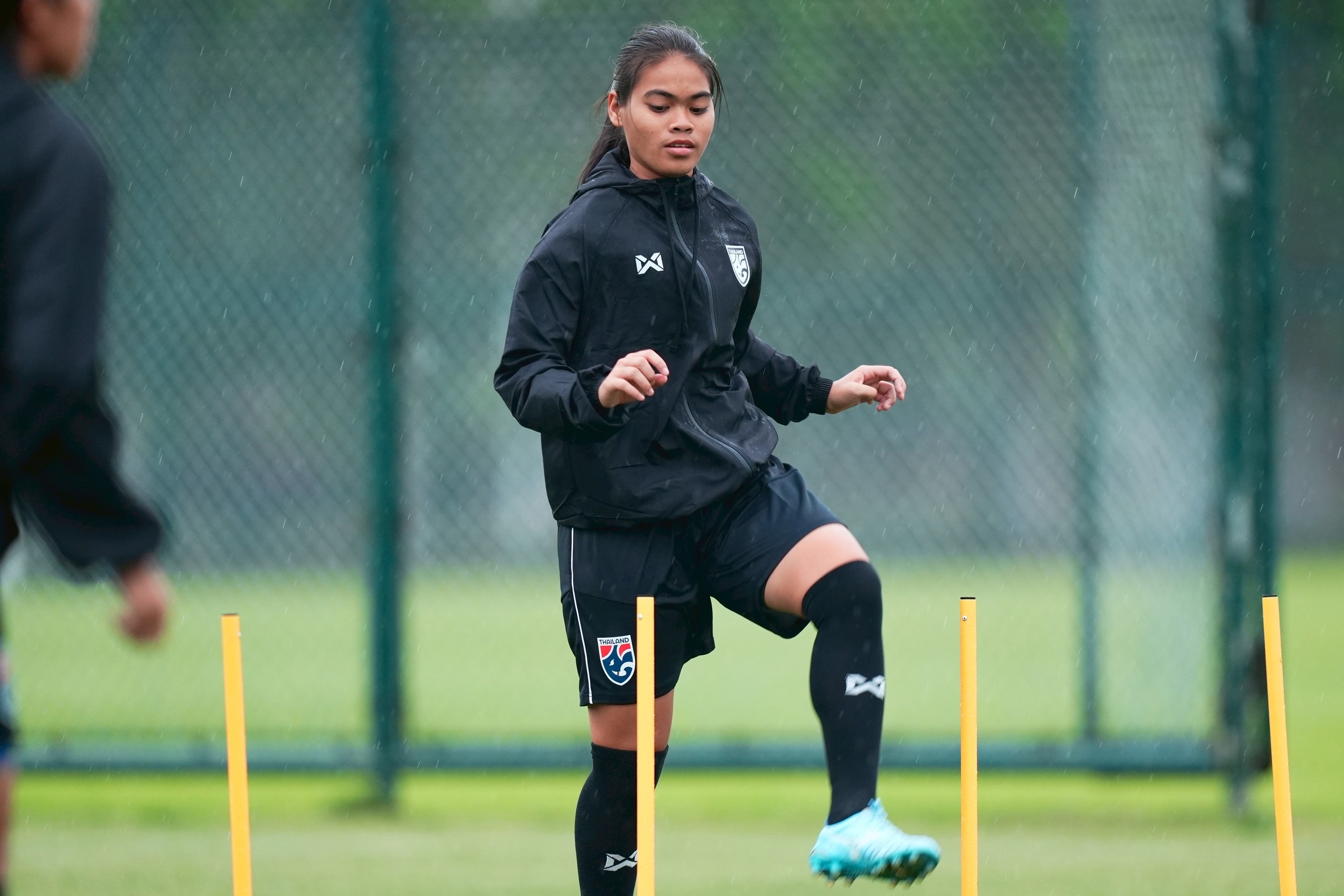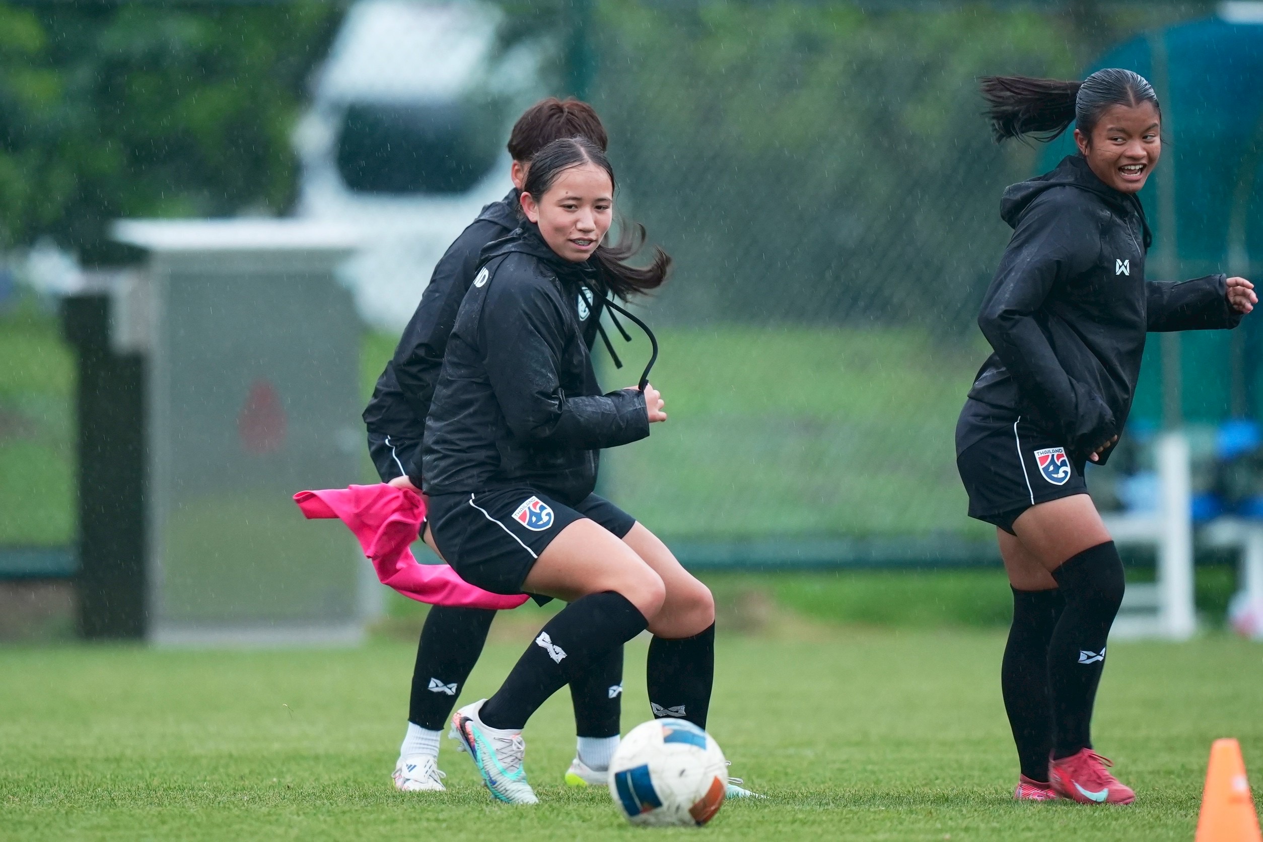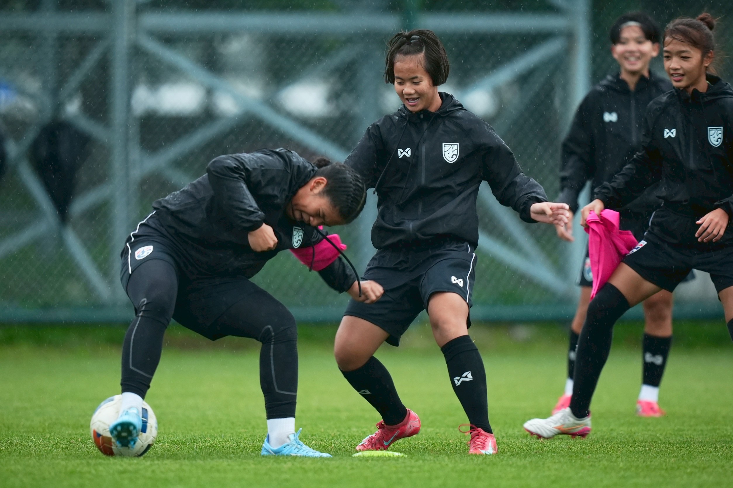 การฝึกซ้อมครั้งนี้ "โค้ชมิ่ม" ธิดารัตน์ วิวาสุขุ หัวหน้าผู้ฝึกสอน นำทัพลงติวเข้ม โดยเน้นไปที่การปรับตัวกับสภาพอากาศที่มีอุณหภูมิกว่า 14 องศาเซลเซียสและมีฝนตกลงมา รวมถึงการสร้างความสัมพันธ์ภายในทีมทั้งเกมรุกและเกมรับ ซึ่งใช้เวลา 1 ชั่วโมง 30 นาที