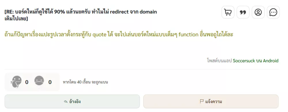 Re: บอร์ดใหม่ก็ดูใช้ได้ 90% แล้วนะครับ ทำไมไม่ redirect จาก domain เดิมไปเลย