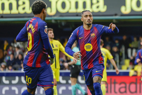 รูปเกมเปิดแลก บาร์เซโลน่า เกือบโดนหลายครั้งแต่ได้จุดโทษ ราฟินญ่า ออกนำ แล้วท้ายครึ่งแรก เรนาโต้ เวก้า ฝั่งคู่แข่งรับแดงเป็นจุดเปลี่ยน ก่อนครึ่งหลัง ลามีน ยามาล ยิงปิดกล่อง บุกชนะ 2-0 หยุดฟอร์มร้อนแรงใน ลาลีก้า ของ บีญาร์เรอัล พร้อมส่งท้ายปีโดยนำจ่าฝูงเหนือ เรอัล มาดริด 4 แต้ม