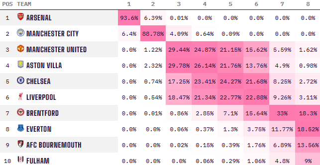 | 2 | Manchester City | 24 | 14 | 5 | 5 | 49 | 23 | 26 | 47 |